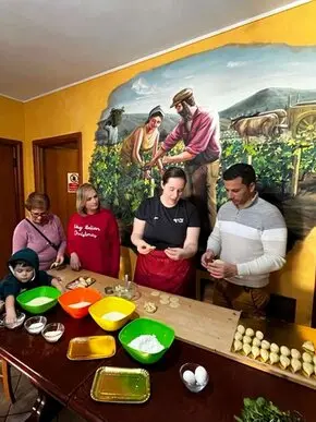 - Lo show cooking ed il pranzo in Agriturismo (antipasti misti di terra con bruschette, primo di culurgiones, seadas, ½ di acqua e ¼ di vino di proprietà);