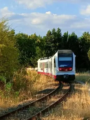 Il trenino sta per partire! Dalla stazione San Gottardo di Monserrato (Cagliari), si viaggia comodi, sui nuovissimi treni Stadler. attraverso i territori del basso Campidano fino a Mandas, in un viaggio alla riscoperta della Sardegna, sulle orme di David Herbert Lawrence e del suo libro “Mare e Sardegna” (1921).